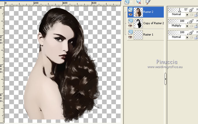 Activate the top layer and change opacity to 57 (or according to your tube).