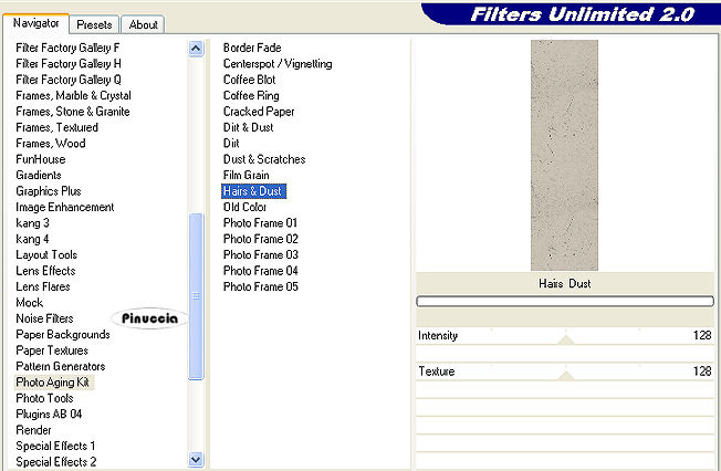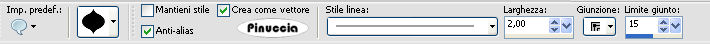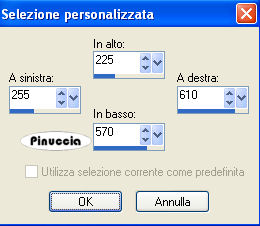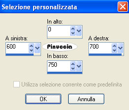 qui puoi trovare qualche risposta ai tuoi dubbi. Se l'argomento che ti interessa non è presente, ti prego di segnalarmelo. Questo tutorial è stato scritto con PSP Corel X2, ma può essere eseguito anche con le precedenti versioni. Per tradurlo, ho usato PSP X. Occorrente: Un tube a scelta. Il resto del materiale qui Il tubes usato per il mio esempio è di Sharlimar. Filtri. Filters Unlimited 2.0 qui Photo Aging Kig qui per usare il filtro Photo Aging kit, bisogna importarlo in Filters Unlimited. Come fare vedi qui Metti la forma sk-random 77 nella cartella Forme predefinite. 1. Apri il file di sfondo "ssam_chickadee_paper28". Questo file che ha la corretta dimensione, sarà la base del tuo lavoro. Scegli due colori dal tuo tube. Imposta il colore chiaro come colore di primo piano (il mio #CDC5B7), e il colore scuro come colore di sfondo (il mio #A11713). 2. Se stai usando colori diversi, colorizza il tuo sfondo in armonia con questi colori. Regola>Tonalità e Saturazione>Viraggio... (per l'uso del viraggio qui) 3. Livelli>Nuovo livello raster. Attiva lo strumento Selezione ,clicca sull'icona Selezione personalizzata ![]() e imposta i seguenti settaggi: ![]() Riempi la selezione con il colore chiaro di primo piano.4. Effetti>Plugins>Filters Unlimited - Photo Aging kit - Hairs & Dust, con i settaggi standard. ![]() Selezione>Deseleziona. Effetti>Effetti 3D>sfalsa ombra: ![]() 5. Livelli>Nuovo livello raster. Selezione personalizzata ![]() e imposta i seguenti settaggi: ![]() Riempi la selezione con il colore di sfondo.Ripeti l'Effetto Photo Aging kit come al punto 3. Selezione>Deseleziona. Effetti>Effetti 3D>Sfalsa ombra, come al punto 4. 6. Livelli>Nuovo livello raster. Selezione personalizzata ![]() e imposta i seguenti settaggi: ![]() Imposta il colore di primo piano con il nero. Riempi la selezione con il colore nero di primo piano.Selezione>Deseleziona. Effetti>Effetti 3D>Sfalsa ombra, come al punto 4. 7. Attiva lo strumento Forme predefinite ![]() seleziona la forma "sk random 77", con i seguenti settaggi. ![]() Passa il colore nero a colore di sfondo e chiudi il colore di primo piano. Traccia la forma nell'angolo in alto a sinistra con una dimensione di 30x35 pixels. mentre disegni la forma puoi controllare la dimensione nella barra inferiore ![]() 8.Livelli>converti in livello raster. Livelli>Duplica. Sposta il duplicato un po' più in basso.Livelli>Unisci>Unisci giù. Livelli>Duplica. Sposta questo duplicato un po' più in basso.Livelli>Unisci>Unisci giù. Ancora una volta Livelli>Duplica. Sposta più in basso questo livello.Livelli>Unisci>Unisci giù. 9. Sposta le forme sulla striscia chiara a destra.![]() Effetti>Effetti 3D>Sfalsa ombra, come al punto 4. 10. Livelli>Nuovo livello raster. Attiva lo strumento Selezione , cerchio,traccia un cerchio di 114 x 114 pixels. in questo caso, mentre disegni il cerchio, nella barra degli strumenti trovi la dimensione a destra: ![]() Riporta il colore di primo piano e il colore di sfondo ai colori iniziali (#CDC5B7 e #A11713). Riempi la forma con il colore di primo piano.11. Ripeti l'Effetto Photo Aging kit come al punto 3. Selezione>Deseleziona. Effetti>Effetti 3D>Sfalsa ombra, come al punto 4. 12. Livelli>Duplica - e ripeti. Disponi i tre cerchi come nell'esempio. ![]() 13. Livelli>Nuovo livello raster. Attiva nuovamento lo strumento Forme predefinite , cerchio,e traccia un cerchio di 342 x 342 pixels. Riempi la forma con il colore di sfondo.14. Selezione>Modifica>Contrai - 5 pixels. Premi sulla tastiera il tasto CANC. Selezione>Modifica>Contrai - 5 pixels. Riempi con il colore di sfondo.15. Selezione>Modifica>Contrai - 3 pixels. Premi sulla tastiera il tasto CANC. Selezione>Modifica>Contrai - 5 pixels. Riempi con il colore di sfondo.Selezione>Modifica>Contrai - 10 pixels. Premi sulla tastiera il tasto CANC. 16. Selezione>Modifica>Contrai - 5 pixels. Riempi con il colore di sfondo.Selezione>Modifica>contrai - 3 pixels. Premi sulla tastiera il tasto CANC. Selezione>Modifica>Contrai - 5 pixels. Riempi con il colore di sfondo.17. Selezione>Modifica>Contrai - 5 pixels. Premi sulla tastiera il tasto CANC. Effetti>Effetti 3D>Sfalsa ombra, come al punto 4. Selezione>Deseleziona. 18. Livelli>Duplica. Nella paletta dei livelli trascina uno dei due livelli sopra il livello di sfondo. Sposta i due cerchi come nell'esempio.ho chiuso il livello di sfondo per visualizzare meglio l'esempio ![]() 19. Livelli>Nuovo livello raster. Selezione personalizzata .![]() Imposta il colore di primo piano con il colore nero. Riempi la selezione con il colore nero.20. Selezione>Modifica>Contrai - 10 pixels. Riempi la selezione con il colore di sfondo.Ripeti l'Effetto Photo Aging kit come al punto 3. Selezione>Deseleziona. Effetti>Effetti 3D>Sfalsa ombra, come al punto 4. 21. Apri il tube Kwiat e vai a Modifica>copia. Torna al tuo lavoro e vai a Modifica>Incolla come nuovo livello. Spostalo nell'angolo in basso a sinistra.Effetti>Effetti 3D>Sfalsa ombra, come al punto 4. 22. Apri il tube "Wordart" e vai a Modifica>copia. Torna al tuo lavoro e vai a Modifica>Incolla come nuovo livello. Spostalo in alto.Effetti>Effetti 3D>Sfalsa ombra, come al punto 4. 23. Apri il tuo tube e vai a Modifica>copia. Torna al tuo lavoro e vai a Modifica>Incolla come nuovo livello. Sposta il tube a destra.Livelli>Duplica e attiva il livello sottostante. Regola>Sfocatura>Sfocatura gaussiana - raggio 10. ![]() Effetti>Effetti 3D>Sfalsa ombra, come al punto 4. 24. Attiva il livello superiore. Attiva lo strumento Testo e scrivi il tuo nome e, se vuoi, aggiungi il tuo watermark.25. Immagine>Aggiungi bordatura, 2 pixels, simmetriche, con il colore nero. Immagine>Aggiungi bordatura, 20 pixels, simmetriche, con il colore rosso #A11713. 26. Seleziona questo bordo con la bacchetta magica ![]() Ripeti l'Effetto Photo Aging Kit come al punto 3. Selezione>Deseleziona. 27. Immagine>Aggiungi bordatura, 2 pixels, simmetriche, con il colore nero. Hai finito. Puoi salvare in formato jpg. Se hai problemi o du
