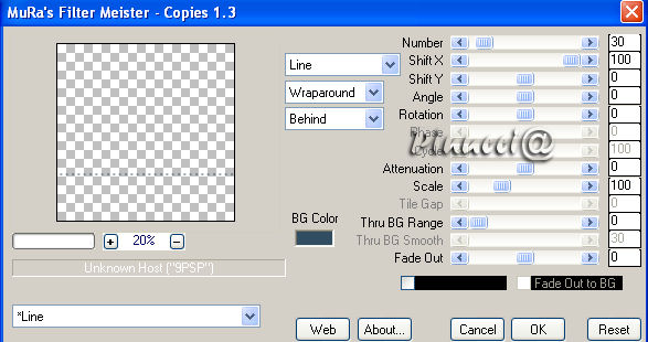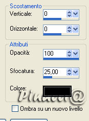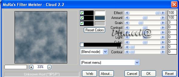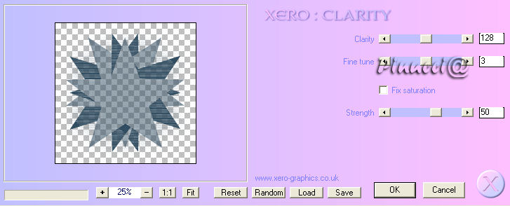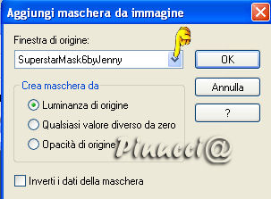qui puoi trovare qualche risposta ai tuoi dubbi. Se l'argomento che ti interessa non è presente, ti prego di segnalarmelo. Questo tutorial è stato scritto con Corel X3, ma può essere eseguito anche con le precedenti versioni. Per tradurlo, ho usato PSP X. Occorrente: Un tube a scelta. Il resto del materiale qui Filtri: Mura's Meister - Copies qui Mura's Meister - Cloud qui Filters Unlimited qui Tramages - Tow The Line qui Xero - Clarity qui Apri tutto il materiale in PSP, compresa la maschera. 1. Apri una nuova immagine trasparente 800 x 800 pixels. Scegli due colori dal tuo tube. Per il mio esempio ho usato come colore di primo piano il colore scuro #314d61, e come colore di sfondo il colore chiaro #bebebe. Riempi l'immagine trasparente con il colore di sfondo (tasto destro del mouse).Effetti>Effetti di trama>Trama - seleziona la trama Grana fine nuvoloso, con i seguenti settaggi. ![]() 3. Livelli>Nuovo livello raster. Riempi con il colore di primo piano.Livelli>Nuovo livello maschera>Da immagine. Apri il menu sotto la finestra di origine e vedrai la lista dei files aperti. Tra questi la maschera. Seleziona la maschera SuperstarMaskybyJenny con i seguenti settaggi: ![]() Livelli>Elimina, e rispondi sì alla domanda Unire la maschera nel livello corrente. ![]() Livelli>Unisci>Unisci gruppo. Effetti>Plugins>Xero - Clarity, con i settaggi standard. ![]() 4. Livelli>Nuovo livello raster. Attiva lo strumento Selezione ![]() clicca sull'icona Selezione personalizzata ![]() e imposta i seguenti settaggi. ![]() Riempi la selezione con il colore di primo piano.Effetti>Plugins>Tramages - Tow the line. ![]() Selezione>Deseleziona. 6. Effetti>Effetti 3D>Sfalsa ombra. ![]() 7. Livelli>Nuovo livello raster. Attiva lo strumento Selezione , cerchio,e traccia un cerchio di 518 x 518 pixels. Mentre disegni la forma, puoi controllare la dimensione nella barra inferiore degli strumenti. ![]() Effetti>Plugins>Mura's Meister - Cloud. ![]() Mantieni selezionato. 8. Livelli>Nuovo livello raster. Apri il tube western-stad e vai a Modifica>Copia. Torna al tuo lavoro e via a Modifica>Incolla nella selezione. Selezione>Deseleziona. Cambia la modalità di miscelatura di questo livello in Luminanza (Esistente). Livelli>Unisci>Unisci giù. Sposta il cerchio al centro dell'immagine - vedi il mio esempio.Effetti>Effetti 3D>sfalsa ombra, come al punto 6. 9. Livelli>Nuovo livello raster. Selezione personalizzata ![]() ![]() Riempi con il colore di primo piano.Effetti>Plugins>Tramages - Two the line come al punto 5. Effetti>Effetti 3D>Sfalsa ombra, come al punto 6. Selezione>Deseleziona. 10. Livelli>Nuovo livello raster. Selezione personalizzata ![]() ![]() Riempi con il colore di sfondo.Selezione>Deseleziona. 11. Attiva lo strumento Forme predefinite - Stella ![]() Imposta il colore scuro come colore di sfondo, e chiudi il colore di primo piano. Traccia una stella di 16x16 pixels. Livelli>Converti in livello raster. Sposta la stella all'inizio della striscia chiara.![]() Effetti>Plugins>Mura's Meister - Copies. ![]() 14. Cancella le stelle al di fuori della striscia usando la gomma ![]() o selezionale e premi il tasto CANC.![]() Livelli>Unisci>Unisci giù. Effetti>Effetti 3D>Sfalsa ombra, come al punto 6. Livelli>Duplica. Sposta la seconda striscia in basso a destra.![]() 15. Apri il tuo tube e vai a Modifica>Copia. Torna al tuo lavoro e vai a Modifica>Incolla come nuovo livello. Spostalo un po' più a destra - vedi il mio esempio.Effetti>Effetti 3D>Sfalsa ombra. ![]() 16. Attiva lo strumento Testo e scrivi un testo nella striscia al centro.Effetti>Effetti 3D>Sfalsa ombra, a tua scelta. Aggiungi il tuo nome e/o il tuo watermark su un nuovo livello. 17. Immagine>Aggiungi bordatura, 2 pixels, simmetriche, con il colore di primo piano #314d61. Immagine>Aggiungi bordatura, 5 pixels, simmetriche, con il colore di sfondo #bebebe. Immagine>Aggiungi bordatura, 2 pixels, simmetriche, con il colore #314d61. Immagine>Aggiungi bordatura, 10 pixels, simmetriche, con il colore di sfondo #bebebe. Immagine>Aggiungi bordatura, 2 pixels, simmetriche, con il colore #314d61. Hai finito. Puoi salvare il tuo lavoro in formato jpg. ![]() Se hai problemi o dubbi, o trovi un link non funzionante, o anche soltanto per un saluto, scrivimi. 11 Agosto 2010 |