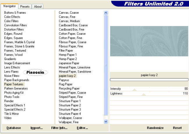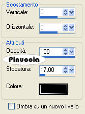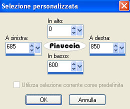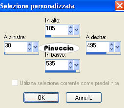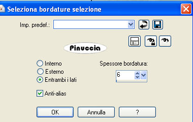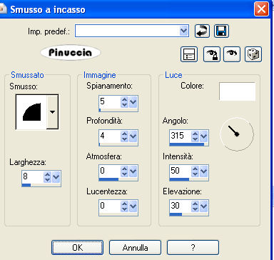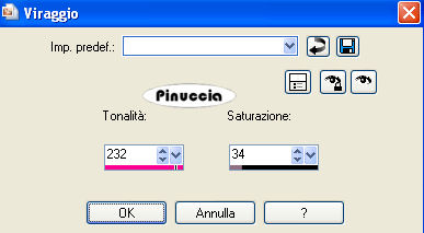 qui puoi trovare qualche risposta ai tuoi dubbi. Se l'argomento che ti interessa non è presente, ti prego di segnalarmelo. Questo tutorial è stato scritto con PSP Corel X2, ma può essere eseguito anche con le precedenti versioni. Per tradurlo, ho usato PSP X. Occorrente: Un tube a scelta. Il resto del materiale qui Per il mio esempio ho usato un tube di Gina. Filtri: Simple qui Filters Unlimited qui Xero - Porcelain qui Importa la trama Paper Textures-papier kasy in Filters Unlimited. 1. Apri una nuova immagine trasparente 850 x 600 pixels. Scegli tre colori dai tuoi tubes. Nel mio esempio ho usato come colore di primo piano il colore chiaro verde #B8D1D5, e come colore di sfondo il colore chiaro lilla #B7A3AE). Come terzo colore ho usato il bianco #ffffff. 2. Selezione>Seleziona tutto. Apri il file di sfondo "hintergrund" e vai a Modifica>Copia. Torna al tuo lavoro e vai a Modifica>Incolla nella selezione. Regola>Tonalità e saturazione>Viraggio: ![]() Selezione>Deseleziona. 3. Livelli>Nuovo livello raster. Attiva lo strumento Selezione ![]() clicca sull'icona Selezione personalizzata ![]() e imposta i seguenti settaggi: ![]() Riempi con il colore verde chiaro di primo piano.4. Effetti>Plugins>Filters Unlimited 2.0 - Paper Textures - Papier Kasy2, con i seguenti settaggi. ![]() Effetti>Plugins>Simple - Quick Tile. Selezione>Deseleziona. 5. Effetti>Effetti 3D>Sfalsa ombra, con i seguenti settaggi: ![]() 6. Livelli>Nuovo livello raster. Attiva lo strumento Selezione , cerchio,e disegna un cerchio della dimensione di 514 x 514 pixels. puoi controllare la dimensione nella barra inferiore; non preoccuparti per la posizione: potrai spostarlo dopo ![]() Riempi la selezione con il colore di sfondo.Effetti>Plugins>Filters Unlimited 2.0, come al punto 4. Effetti>Plugins>Simple - Quick Tile. Selezione>Deseleziona. Effetti>Effetti 3D>Sfalsa ombra, come al punto 5. 7. Livelli>Nuovo livello raster. Selezione personalizzata ![]() ![]() 8. Selezione>Modifica>Seleziona bordature selezione: ![]() Riempi con il colore bianco #ffffff.9. Effetti>Effetti 3D>Smusso a incasso: ![]() Selezione>Deseleziona. 10. Attiva lo strumento Bacchetta magica ![]() ![]() e clicca all'interno della cornice bianca. Selezione>Modifica>Espandi - 3 pixels. Livelli>Nuovo livello raster. Riempi con il colore di primo piano.Effetti>Plugins>Filters Unlimited 2.0, come al punto 4. Effetti>Plugins>Simple - Quick Tile. 11. Sposta questo livello sotto il livello della cornice: Livelli>Disponi>Sposta giù. Apri il tube con il paesaggio "a-white-christmas1 lizztish" e vai a Modifica>copia. Torna al tuo lavoro e vai a Modifica>Incolla come nuovo livello. Posiziona il tube nella cornice.Selezione>Inverti. Premi sulla tastiera il tasto CANC ![]() Selezione>Deseleziona. 12. Attiva il livello della cornice. Livelli>Unisci>Unisci giù, 2 volte. Effetti>Effetti 3D>Sfalsa ombra, come al punto 5. Immagine>ruota per gradi - 15 gradi a sinistra. ![]() Immagine>Ridimensiona, al 90%, tutti i livelli non selezionato. 13. Livelli>Nuovo livello raster. Selezione personalizzata :![]() Riempi con il colore di sfondo.Selezione>Deseleziona. 14. Attiva lo strumento Deformazione premendo sulla tastiera il tasto D. Tenendo premuto il tasto della maiuscola spingi l'angolo superiore sinistro all'interno, come nell'esempio. ![]() Effetti>Plugins>Filters Unlimited 2.0, come al punto 4. Effetti>Effetti 3D>Sfalsa ombra, come al punto 5. 15. Ripeti i passi 13 e 14, ma riempendo la selezione con il colore bianco. Livelli>Disponi>Sposta giù e sposta questo livello un po' più a sinistra (vedi il mio esempio).16. Ripeti nuovamente i passi 13 e 14, riempendo la selezione con il colore di primo piano. Livelli>Disponi>Sposta giù e sposta questo livello un po' più a sinistra.Dovresti avere questo: ![]() 17. Apri il tuo tube e vai a Modifica>Copia. Torna al tuo lavoro e vai a Modifica>Incolla come nuovo livello. Effetti>Effetti 3D>sfalsa ombra, con i seguenti settaggi: ![]() 18. Attiva lo strumento Testo , scegli un font,e scrivi il tuo testo sull'immagine, senza dimenticare di aggiungere il tuo nome e/o il tuo watermark. Per entrambi i testi: Effetti>effetti 3D>sfalsa ombra, come al punto 5. ![]() 19. Immagine>Aggiungi bordatura, 2 pixels, simmetriche, con il colore #B8D1D5. Immagine>Aggiungi bordatura, 2 pixels, simmetriche, con il colore #B7A3AE. Immagine>Aggiungi bordatura, 2 pixels, simmetriche, con il colore #B8D1D5. 20. Immagine>Aggiungi bordatura, 20 pixels, simmetriche, con il colore bianco #ffffff. Seleziona questo bordo con la bacchetta magica ![]() Effetti>Plugins>Filters Unlimited 2.0, come al punto 4. Selezione>Deseleziona. 21. Immagine>Aggiungi bordatura, 2 pixels, simmetriche, con il colore #B8D1D5. Immagine>Aggiungi bordatura, 2 pixels, simmetriche, con il colore #B7A3AE. Immagine>Aggiungi bordatura, 2 pixels, simmetriche, con il colore #B8D1D5. 23. Effetti>Plugins>Xero - Porcelain, con i settaggi standard. ![]() Per questo esempio ho usato un tube di Lori Rhae. ![]() Se hai problemi o dubbi, o trovi un link non funzionante, o anche soltanto per un saluto, scrivimi. 18 Dicembre 2008 |