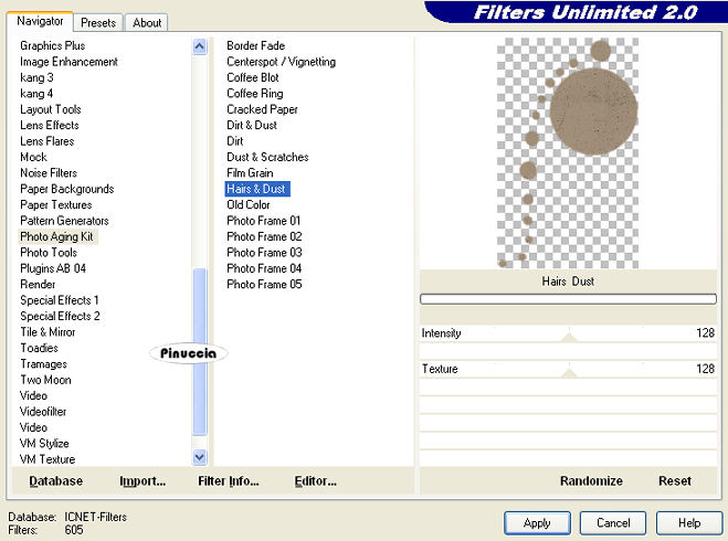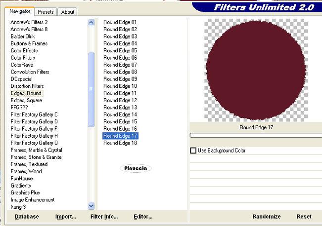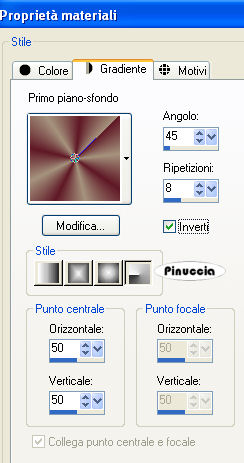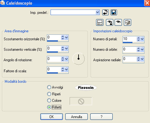 qui puoi trovare qualche risposta ai tuoi dubbi. Se l'argomento che ti interessa non è presente, ti prego di segnalarmelo. Questo tutorial è stato scritto con PSP Corel X2, ma può essere eseguito anche con le precedenti versioni. Per tradurlo, ho usato PSP X. Occorrente: a scelta il tube principale. per abbinare il tube al titolo del tutorial dovrebbe essere una figura con una sfera o una palla in mano. Naturalmente puoi usare il tube che preferisci. Il resto del materiale qui Non conosco l'autore del tube che ho usato per tradurre il tutorial. Filtri: FM Tile Tools qui Filters Unlimited 2.0 qui Photo Aging kit qui Xero - Clarity qui Sybia - Zigzagge qui I filtri Photo Aging Kit si usano importandoli in Filters Unlimited (come fare vedi qui) Metti le selezioni nella cartella Selezioni. 1. Apri una nuova immagine trasparente 700 x 800 pixels. Scegli due colori dal tuo tube. Per il mio esempio ho impostato il colore di primo piano con il colore chiaro #a5937d, e il colore di sfondo con il colore scuro #5f1826. 2. Passa il colore di primo piano a Gradiente di primo piano/sfondo, con i seguenti settaggi. ![]() Riempi l'immagine trasparente con il gradiente.Sfocatura>Sfocatura gaussiana - raggio 10. ![]() Effetti>Effetti di riflesso>Caleidoscopio. ![]() 4. Effetti>Plugins>Sybia - Zigzagge. ![]() Effetti>Plugins>FM Tile Tools - Blend Emboss, con i settaggi standard. ![]() 5. Livelli>Nuovo livello raster. Attiva lo strumento Selezione , cerchio,e traccia un cerchio di 332 x 332 pixels, mentre tracci il cerchio puoi controllare la dimensione nella barra inferiore. ![]() Riempi la selezione con il colore di sfondo.6. Effetti>Plugins>Filters Unlimited - Edge Round - Round Edge 17 ![]() 7. Mantieni selezionato. Livelli>Nuovo livello raster. Riempi con il colore chiaro di primo piano.Livelli>Disponi>Sposta giù. Selezione>Deseleziona. Attiva il livello superiore. Effetti>Effetti 3D>sfalsa ombra. ![]() Livelli>Unisci>Unisci giù. Ripeti l'Effetto Sfalsa ombra, con gli stessi settaggi. 8. Livelli>Duplica. Immagine>ridimensiona, all'80%, tutti i livelli non selezionato. Livelli>Duplica. Posiziona i cerchi come nell'esempio.![]() 9. Livelli>Nuovo livello raster. Selezione>Carica/Salva selezione>Carica selezione da disco. Cerca e carica la selezione "tag-rom-142-1": ![]() 10. Riempi la selezione con il colore chiaro di primo piano.Effetti>Plugins>Filters Unlimited 2.0 - Photo Aging Kit - Hair&Dust: ![]() Effetti>effetti 3D>Sfalsa ombra, come al punto 7. Selezione>Deseleziona. 11. Livelli>Duplica - 6 volte. Posiziona i livelli come nell'esempio.![]() 12. Assicurati di essere posizionato sul livello superiore. Apri il tube "herzen" e vai a Modifica>Copia. Torna al tuo lavoro e vai a Modifica>Incolla come nuovo livello. Posiziona il tube nel cerchio in alto a sinistra.Effetti>Effetti 3D>Sfalsa ombra: ![]() 13. Apri il tuo tube e vai a Modifica>Copia. Torna al tuo lavoro e vai a Modifica>Incolla come nuovo livello. Posiziona il tube a destra - vedi il mio esempio.Effetti>Effetti 3D>Sfalsa ombra, come al punto 12. 14. Attiva lo strumento Testo , scegli un font e scrivi un testo e/o il tuo nome.Se vuoi aggiungi il tuo watermark. Effetti>effetti 3D>Sfalsa ombra, con settaggi a tua scelta. 15. Immagine>Aggiungi bordatura, 2 pixels, simmetriche, con il colore #5F1826. Immagine>Aggiungi bordatura, 2 pixels, simmetriche, con il colore #A5937D. Immagine>Aggiungi bordatura, 2 pixels, simmetriche, con il colore #5F1826. Immagine>Aggiungi bordatura, 5 pixels, simmetriche, con il colore #A5937D. Immagine>Aggiungi bordatura, 5 pixels, simmetriche, con il colore #5F1826. Immagine>Aggiungi bordatura, 1 pixel, simmetriche, con il colore #A5937D. Immagine>Aggiungi bordatura, 1 pixel, simmetriche, con il colore #5F1826. 16. Selezione>Seleziona tutto. Selezione>Modifica>Contrai - 18 pixels. Effetti>Effetti 3D>Ritaglio: ![]() Selezione>Deseleziona. 17. Effetti>Plugins>Xero - Clarity: ![]() Hai finito. Puoi salvare in formato jpg. Non conosco l'autore del tube usato per questa variante. ![]() Per questo esempio ho usato un tube di Outlaw by design ![]() Se hai problemi o dubbi, o trovi un link non funzionante, o anche soltanto per un saluto, scrivimi. 1 Luglio 2009 |
