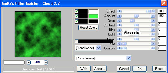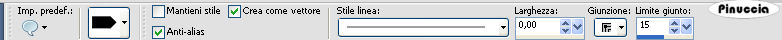 qui puoi trovare qualche risposta ai tuoi dubbi. Se l'argomento che ti interessa non è presente, ti prego di segnalarmelo. Questo tutorial è stato scritto con PSP Corel X2, ma può essere eseguito anche con le precedenti versioni. Per tradurlo, ho usato PSP X. Occorrente: Un tube a scelta e tube accessori in tema. Il resto del materiale qui Il tube che ho usato è di Jack. Filtri. Mura's Meister - Cloud qui Alien Skin Eye Candy 5 Impact - Perspective Shadow qui Metti la forma "Pfeil 16" nella cartella Forme predefinite. 1. Apri una nuova immagine trasparente 800 x 800 pixels. Scegli due colori dal tuo tube. Per il mio esempio ho usato come colore di primo piano il colore chiaro #3bfe40, e come colore di sfondo il colore nero #000000. 2. Effetti>Plugins>Mura's Meister - Cloud. ![]() 3. Attiva lo strumento Forme predefinite ![]() e seleziona la forma Pfeil 16 con i seguenti settaggi: ![]() Il colore di sfondo è impostato sul nero. 4. Traccia la forma, partendo dall'angolo in alto a sinistra, di 638 x 120 pixels. mentre disegni la forma puoi controllare la dimensione nella barra inferiore. ![]() 5. Livelli>Converti in livello raster. Sposta la forma a destra, e un po' più in basso.6. Livelli>Duplica. Immagine>Rifletti. Sposta le forme come nell'esempio.![]() Quando hai fatto, assicurati di essere posizionato sul livello superiore, e vai a Livelli>unisci>Unisci giù. 7. Apri il file di sfondo "Holz" e minimizzalo. Passa il colore di primo piano a Motivi e troverai il file nell'elenco dei motivi disponibili. Seleziona "holz" con i seguenti settaggi. ![]() 8. Clicca con la bacchetta magica , sfumatura e tolleranza 0,sulla parte nera per selezionarla. Riempi la selezione con il motivo di primo piano.Selezione>Deseleziona. 9. Effetti>Effetti 3D>Sfalsa ombra: ![]() 10. Immagine>ruota per gradi - 90 gradi a sinistra. ![]() Livelli>Duplica - 4 volte e avrai così 5 livelli. Disponi i livelli come nell'esempio.![]() 11. Livelli>Nuovo livello raster. Attiva lo strumento Selezione , cerchio,e traccia una selezione di 680 x 680 pixels circa, mentre tracci la selezione puoi controllare la dimensione nella barra inferiore. ![]() Riempi la selezione con il colore chiaro di primo piano.12. Selezione>Modifica>Contrai - 20 pixels. Riempi con il colore di sfondo.Selezione>Modifica>Contrai - 20 pixels. Riempi con il colore di primo piano.13. Apri il tube di sfondo "halloween_mistedpaysage03", e vai a Modifica>Copia. Torna al tuo lavoro e vai a Modifica>Incolla nella selezione. Selezione>Inverti. 14. Premi sulla tastiera il tasto CANC. Selezione>Deseleziona. Livelli>Unisci>Unisci giù. 15. Effetti>Plugins>Alien Skin Eye Candy 5 Impact - Perspective Shadow, seleziona Drop Shawow, Blurry con i settaggi standard. ![]() Posiziona il cerchio al centro dell'immagine.16. Copia e incolla, a tua scelta, il tube di un albero di Halloween, oppure un albero vuoto che puoi decorare con piccoli tubes in tema. Sposta l'albero a sinistra.Effetti>Plugins>Alien Skin Eye Candy 5 Impact - Perspective shadow, con i settaggi precedenti. 17. Apri il tuo tube e vai a Modifica>Copia. Torna al tuo lavoro e vai a Modifica>Incolla come nuovo livello. Sposta il tube a destra.Effetti>Plugins>Alien skin Eye Candy 5 Impact - Perspective Shadow, con i settaggi precedenti. 18. Attiva lo strumento Testo e scrivi un testo sull'immagine o scrivi il tuo nome.Se vuoi aggiungi anche il tuo watermark. Effetti>Effetti 3D>Sfalsa ombra, a tua scelta. 19. Immagine>Aggiungi bordatura, 1 pixel, simmetriche, con il colore nero #000000. Immagine>Aggiungi bordatura, 1 pixel, simmetriche, con il colore nero #3BFE40. Immagine>Aggiungi bordatura, 20 pixels, simmetriche, con il colore nero #000000. Bild - Rand hinzufügen von 20 Pixel in der Farbe #000000 Immagine>Aggiungi bordatura, 1 pixel, simmetriche, con il colore nero #3BFE40. Immagine>Aggiungi bordatura, 1 pixel, simmetriche, con il colore nero #000000. Hai finito. Puoi salvare in formato jpg. Se hai problemi o dubbi, o trovi un link non funzionante, o anche soltanto per un saluto, scrivimi. 13 Ottobre 2009 |