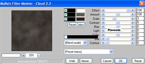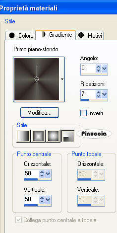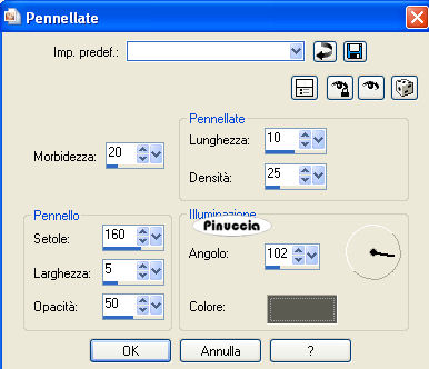qui puoi trovare qualche risposta ai tuoi dubbi. Se l'argomento che ti interessa non è presente, ti prego di segnalarmelo. Questo tutorial è stato scritto con PSP Corel X2, ma può essere eseguito anche con le precedenti versioni. Per tradurlo, ho usato PSP X. Occorrente: Un tube a scelta. Il resto del materiale qui Il tube che ho usato è di Mentali e di Tasha. Filtri. Mura's Meister - Cloud qui Graphics Plus - Cross Shadow qui Metti la forma spinnennetzromana nella cartella Forme predefinite. Apri il font e minimizzalo. 1. Apri una nuova immagine trasparente 800 x 800 pixels. Scegli due colori dal tuo tube. Per il mio esempio ho usato come colore di primo piano il colore chiaro #5b5b51, e come colore di sfondo il colore scuro #2f2423. 2. Effetti>Plugins>Mura's Meister - Cloud. ![]() 3. Apri il tube dell'albero (baum rom11) e vai a Modifica>Copia. Torna al tuo lavoro e vai a Modifica>Incolla come nuovo livello. Sposta il tube in basso a destra, vedi il mio esempio.4. Effetti>Effetti 3D>Sfalsa ombra: ![]() 5. Attiva lo strumento Forme predefinite ![]() e seleziona la forma spinnennetzromana con i seguenti settaggi: ![]() Imposta il colore di sfondo con il nero #000000. 6. Disegna la forma partendo dall'angolo in alto a sinistra, fino all'angolo in basso a destra. ![]() 7. Livelli>Converti in livello raster. Effetti>Effetti 3D>sfalsa ombra, come al punto 4. 8. Apri il tube della luna (Mond) e vai a Modifica>Copia. Torna al tuo lavoro e vai a Modifica>Incolla come nuovo livello. Sposta il tube in alto a destra, vedi il mio esempio.![]() 4. Effetti>Effetti 3D>Sfalsa ombra, come al punto 4. 9. Livelli>Nuovo livello raster. Attiva lo strumento Selezione , cerchio,e traccia un cerchio di circa 170 x 170 pixels. Mentre disegni il cerchio puoi controllare la dimensione nella barra inferiore. ![]() Imposta nuovamente il colore di sfondo con #2f2423. Riempi la selezione con il colore scuro di sfondo #2F2423.10. Selezione>Modifica>Contrai - 5 pixels. Riempi con il colore chiaro di primo piano.Selezione>Deseleziona. Effetti>Effetti 3D>Sfalsa ombra, come al punto 4. 11. Livelli>Duplica - 8 volte, e avrai un totale di 9 livelli. Disponi i cerchi come nell'esempio.![]() 12. Apri il tube del ragno (spinne) e vai a Modifica>Copia. Torna al tuo lavoro e vai a Modifica>Incolla come nuovo livello. Spostalo al centro della ragnatela, o come preferisci.13. Attiva lo strumento Testo , seleziona il font "VoodooHouse".![]() 14. Imposta nuovamente il colore di sfondo con il nero. Scrivi la lettera maiuscola "H" e posizionala nel primo cerchio a sinistra. 15. Livelli>Converti in livello raster. Effetti>Effetti 3D>Sfalsa ombra, con il colore #F88E12: ![]() 16, Ripeti i passaggi dal 13 al 15 per scrivere tutte le lettere che compongono la parola "Halloween". Alla fine dovresti avere questo. ![]() 17. Apri il tube del corvo (crow-3-Belle-Graphics) e vai a Modifica>Copia. Torna al tuo lavoro e vai a Modifica>Incolla come nuovo livello. Sposta il tube in alto a sinistra, vedi il mio esempio.Effetti>Effetti 3D>Sfalsa ombra, come al punto 4. ![]() 18. Apri il tuo tube e vai a Modifica>Copia. Torna al tuo lavoro e vai a Modifica>Incolla come nuovo livello. Posiziona il tube in modo che si possa leggere la scritta.Livelli>Duplica. 19. Attiva il livello sottostante del tube originale. Regola>Sfocatura>Sfocatura gaussiana - raggio 20. ![]() Effetti>Effetti tecniche di disegno - Pennellate: ![]() Effetti>Effetti 3D>Sfalsa ombra, come al punto 4. 20. Attiva il livello superiore. Effetti>Effetti 3D>Sfalsa ombra, come al punto 4. 21. Attiva lo strumento Testo e scrivi il tuo nome.Aggiungi, se vuoi, il tuo watermark. Effetto Sfalsa ombra a tua scelta. 22. Immagine>Aggiungi bordatura, 2 pixels, simmetriche, con il colore #000000. Immagine>Aggiungi bordatura, 50 pixels, simmetriche, con il colore bianco #ffffff. Seleziona questo bordo con la bacchetta magica , sfumatura e tolleranza 0.23. Passa il colore di primo piano a Gradiente. ![]() Riempi la selezione con il gradiente.Effetti>Plugins>Graphics Plus - Cross Shadow, con i settaggi standard. ![]() Selezione>inverti. 24. Effetti>Effetti 3D>sfalsa ombra: ![]() Selezione>Deseleziona. Immagine>Aggiungi bordatura, 2 pixels, simmetriche, con il colore nero. Salva in formato jpg. ![]() Se hai problemi o dubbi, o trovi un link non funzionante, o anche soltanto per un saluto, scrivimi. 13 Ottobre 2009 |