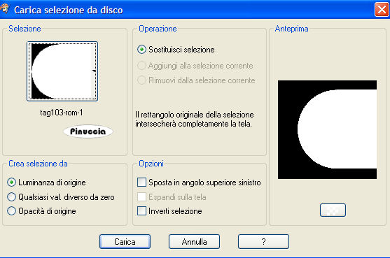 qui puoi trovare qualche risposta ai tuoi dubbi. Se l'argomento che ti interessa non è presente, ti prego di segnalarmelo. Questo tutorial è stato scritto con PSP Corel X2, ma può essere eseguito anche con le precedenti versioni. Per tradurlo, ho usato PSP X. Occorrente: Un tube a scelta. Il resto del materiale qui Metti le Selezioni nella cartella Selezioni. 1. Apri una nuova immagine trasparente 700 x 700 pixels. Scegli due colori dal tuo tube. Imposta un colore di primo piano con il colore chiaro #b4a7e1, e il colore di sfondo con il colore scuro #3a2c64. 2. Selezione>Seleziona tutto. Apri il file di sfondo "Paper 5" e vai a Modifica>Copia. Torna al tuo lavoro e vai a Modifica>Incolla nella selezione. Regola>tonalità e saturazione>Viraggio: ![]() Selezione>Deseleziona. 3. Livelli>Nuovo livello raster. Selezione>Carica/salva selezione>Carica selezione da disco. Cerca e carica la selezione "tag103-rom-1": .Riempi con il colore scuro di sfondo.4. Effetti>Effetti di trama>Trama - seleziona una trama a scelta, con i seguenti settaggi: ![]() Selezione>Deseleziona. 5. Effetti>Effetti 3D>Sfalsa ombra, con i seguenti settaggi: ![]() 6. Livelli>Nuovo livello raster. Selezione>Carica/salva selezione>Carica selezione da disco. Cerca e carica la selezione "tag103-rom-2": .Riempi con il colore bianco #ffffff.Effetti>Effetti di trama>Trama - come al punto 4. Selezione>Deseleziona. Effetti>Effetti 3D>Sfalsa ombra, come al punto 5. 7. Livelli>Nuovo livello raster. Selezione>Carica/salva selezione>Carica selezione da disco. Cerca e carica la selezione "tag103-rom-3": .Riempi con il colore chiaro di primo piano.Effetti>Effetti di trama>Trama, come al punto 4. 8. Mantieni selezionato. Apri il tube "GraphicsByLiz_ChristmasIsInTheMail", e vai a Modifica>Copia. Torna al tuo lavoro e vai a Modifica>Incolla nella selezione. Selezione>inverti. Premi sulla tastiera il tasto CANC. Selezione>Deseleziona. Livelli>Unisci>Unisci giù. Effetti>Effetti 3D>Sfalsa ombra, come al punto 5. 9. Livelli>Nuovo livello raster. Attiva lo strumento Selezione , cerchio,e disegna un cerchio di circa 136 x 136 pixels. mentre disegni il cerchio puoi controllare la dimensione nella barra inferiore ![]() Riempi con il colore scuro di sfondo.Effetti>Effetti di Trama>Trama, come al punto 4. Selezione>Deseleziona. Effetti>Effetti 3D>Sfalsa ombra, come al punto 5. Spostalo in alto a sinistra.10. Livelli>Nuovo livello raster. Livelli>Nuovo livello raster. Attiva lo strumento Selezione , cerchio,e disegna un cerchio di circa 176 x 176 pixels. Riempi con il colore bianco #ffffff.Effetti>Effetti di Trama>Trama, come al punto 4. Selezione>Deseleziona. Effetti>Effetti 3D>Sfalsa ombra, come al punto 5. Spostalo in alto a sinistra.11. Livelli>Nuovo livello raster. Attiva lo strumento Selezione , cerchio,e disegna un cerchio di circa 140 x 140 pixels. Riempi con il colore chiaro di primo piano.Effetti>Effetti di Trama>Trama, come al punto 4. Selezione>Deseleziona. Effetti>Effetti 3D>Sfalsa ombra, come al punto 5. Spostalo come nel mio esempio.![]() 12. Apri il tuo tube e vai a Modifica>Copia. Torna al tuo lavoro e vai a Modifica>Incolla come nuovo livello. Spostalo a sinistra.Effetti>Effetti 3D>Sfalsa ombra, come al punto 5. ![]() 13. Attiva lo strumento Testo , scegli un font,e scrivi "Merry Christmas" in alto, vicino al bordo: Effetti>Effetti 3D>Sfalsa ombra, come al punto 5, ma colore dell'ombra bianco. ![]() 14. Attiva nuovamente lo strumento Testo ,e scrivi il tuo nome. Aggiungi, se vuoi, il tuo watermark. Effetti>Effetti 3D>Sfalsa ombra, come al punto 5. ![]() 15. Attiva il livello di sfondo e vai a Modifica>Copia. 16. Immagine>Aggiungi bordatura, 2 pixels, simmetriche, con il colore #FFFFFF. Immagine>Aggiungi bordatura, 2 pixels, simmetriche, con il colore #3a2c64. Immagine>Aggiungi bordatura, 2 pixels, simmetriche, con il colore #FFFFFF. 17. Immagine>Aggiungi bordatura, 50 pixels, simmetriche, con il colore #B4A7E1. Seleziona il bordo con la bacchetta magica ![]() ![]() Modifica>Incolla nella selezione. Livelli>Rifletti. Selezione>Deseleziona. 18 Selezione>Seleziona tutto. Selezione>Modifica>Contrai - 20 pixels. Livelli>Nuovo livello raster. Riempi con il colore bianco.19. Selezione>Modifica>Contrai - 10 pixels. Oremi sulla tastiera il tasto CANC ![]() Selezione>Deseleziona. 20. Attiva nuovamente la bacchetta magica ![]() e seleziona il bordo bianco. Effetti>Effetti 3D>Smusso a incasso: ![]() Selezione>Deseleziona. 21. Immagine>Aggiungi bordatura, 2 pixels, simmetriche, con il colore bianco #ffffff. Immagine>Aggiungi bordatura, 2 pixels, simmetriche, con il colore 3a2c64. Immagine>Aggiungi bordatura, 2 pixels, simmetriche, con il colore bianco #ffffff. Se hai problemi o dubbi, o trovi un link non funzionante, o anche soltanto per un saluto, scrivimi. 24 Novembre 2008 |