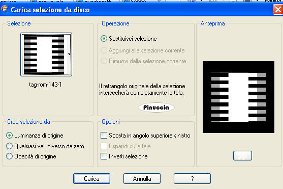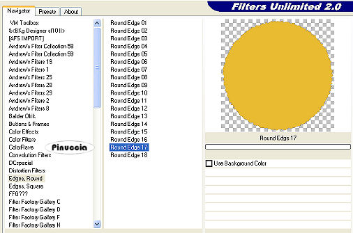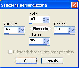 qui puoi trovare qualche risposta ai tuoi dubbi. Se l'argomento che ti interessa non è presente, ti prego di segnalarmelo. Questo tutorial è stato scritto con PSP Corel X2, ma può essere eseguito anche con le precedenti versioni. Per tradurlo, ho usato PSP X. Occorrente: A scelta il tube di una donna e un tube accessorio (un girasole, se vuoi seguire il tema del tutorial, ma puoi anche cambiare soggetto). Il resto del materiale qui Il tube dei girasoli è di Sharlimar. Filtri: Filters Unlimited qui 1. Apri l'immagine di sfondo "Ester-bgr1". Questa immagine - che ha la corretta dimensione 700 x 700 pixels - sarà la base del tuo lavoro. Scegli due colori dal tuo tube. Imposta il colore di primo piano con un colore giallo chiaro (il mio #E9BB31), e il colore di sfondo con un verde scuro (il mio #57540D). 2. Livelli>Nuovo livello raster. Attiva lo strumento Selezione , cerchio,e traccia un cerchio di 370 x 370 pixels, mentre tracci il cerchio puoi controllare la dimensione nella barra inferiore. ![]() Riempi la selezione con il colore scuro di sfondo.3. Selezione>Modifica>Contrai - 10 pixels. Riempi con il colore chiaro di primo piano.Effetti>Plugins>Filters Unlimited - Edge Round - Round Edge 17 ![]() Selezione>Deseleziona. 4. Effetti>Effetti 3D>sfalsa ombra: ![]() 5. Livelli>Duplica. Posiziona i due cerchi come nell'esempio.![]() 6. Livelli>Nuovo livello raster. Selezione>Carica/Salva selezione>Carica selezione da disco. Cerca e carica la selezione "tag-rom-143-1": ![]() 10. Riempi la selezione con il colore scuro di sfondo.Mantieni selezionato. 7. Livelli>Nuovo livello raster. Riempi con il colore chiaro di primo piano.Selezione>Deseleziona. Livelli>Unisci>Unisci giù. 8. Apri il tube "SE-doodleArt" e vai a Modifica>copia. Torna al tuo lavoro e vai a Modifica>Incolla come nuovo livello. Immagine>ruota per gradi - 45 gradi a sinistra. ![]() 9. Livelli>Duplica. Immagine>Rifletti. Immagine>Capovolgi. Posiziona i due livello come nell'esempio.![]() Assicurati di essere posizionato sul livello superiore. Livelli>Unisci>Unisci giù. Effetti>Effetti 3D>sfalsa ombra, come al punto 4. 10. Livelli>Nuovo livello raster. Attiva lo strumento Selezione ,clicca sull'icona Selezione personalizzata ![]() e imposta i seguenti settaggi: ![]() Riempi la selezione con il colore scuro di sfondo.11. Selezione>Modifica>Contrai - 40 pixels. Riempi con il colore chiaro di primo piano.Effetti>Effetti 3D>sfalsa ombra, come al punto 4. 12. Selezione>Modifica>Contrai - 15 pixels. Riempi con il colore scuro di sfondo.Effetti>Effetti 3D>Sfalsa ombra, come al punto 4. Selezione>Deseleziona. 13. Apri il pennello "brush". File>Esporta>Pennello personalizzato, assegna un nome al pennello e ok. 14. Livelli>nuovo livello raster. Attiva lo strumento Pennello ![]() cerca e seleziona il pennello che hai appena esportato, e applicalo nel riquadro centrale cliccando una volta con il tasto sinistro del mouse per usare il colore giallo di primo piano. ![]() 15. Apri il tuo tube accessorio (girasole o quello che preferisci) e vai a Modifica>Copia. Torna al tuo lavoro e vai a Modifica>Incolla come nuovo livello. Spostalo a destra - vedi il mio esempio.Effetti>Effetti 3D>Sfalsa ombra: ![]() 16. Apri il tuo tube e vai a Modifica>Copia. Torna al tuo lavoro e vai a Modifica>Incolla come nuovo livello. Spostalo a sinistra - vedi il mio esempio.Effetti>Effetti 3D>Sfalsa ombra, come al punto 15. 17. Attiva lo strumento Testo , scegli un font e scrivi un testo e/o il tuo nome.Se vuoi, aggiungi il tuo watermark. 18. Attiva il livello di sfondo. Modifica>Copia. Immagine>Aggiungi bordatura, 2 pixels, simmetriche, con il colore #57540D. Immagine>Aggiungi bordatura, 25 pixels, simmetriche, con il colore #E9BB31. Seleziona questo bordo con la bacchetta magica , sfumatura e tolleranza 0.Modifica>Incolla nella selezione. Selezione>Inverti. 19. Effetti>Effetti 3D>sfalsa ombra: ![]() Selezione>Deseleziona. Immagine>Aggiungi bordatura, 2 pixels, simmetriche, con il colore #57540D. Per questi esempi ho usato due tubes di Luz Cristina. ![]() ![]() Se hai problemi o dubbi, o trovi un link non funzionante, o anche soltanto per un saluto, scrivimi. 1 Luglio 2009 |