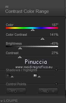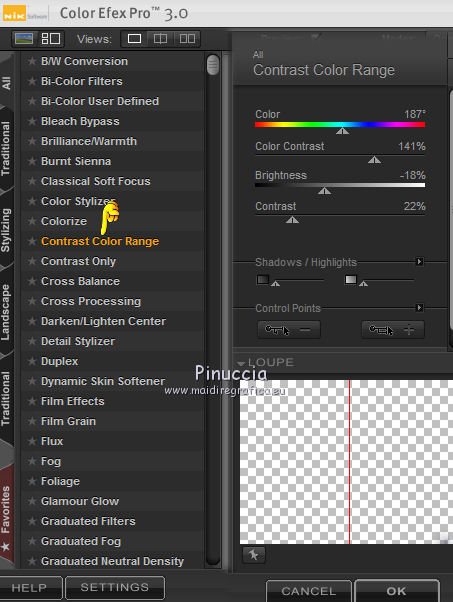 qui puoi trovare qualche risposta ai tuoi dubbi. Se l'argomento che ti interessa non è presente, ti prego di segnalarmelo. Per tradurre questo tutorial ho usato PSP X. Occorrente: Materiale qui Filtri: Nik Software - Color Efex Pro 3.0 qui ![]() Apri una nuova immagine trasparente 750 x 550 pixels. Apri il tube Mist_DarkScenery125_DragonBlu0908.pspimage, e vai a Modifica>Copia. Torna al tuo lavoro e vai a Modifica>Incolla come nuovo livello. Attiva lo strumento Puntatore ![]() deformazione se stai usando PSP 9,oppure premi sulla tastiera il tasto D, e ingrandisci l'immagine come nell'esempio. ![]() Livelli>duplica. Immagine>Rifletti. Livelli>Unisci>Unisci visibile. Livelli>Nuovo livello raster. Riempi il livello con il colore #374a6c.Livelli>Disponi>Porta sotto. Apri il tube Mist_EvilBrideByMorbidiaMorthel_DragonBlu0808.pspimage, e vai a Modifica>Copia. Torna al tuo lavoro e vai a Modifica>Incolla come nuovo livello. Immagine>Ridimensiona, al 75%, tutti i livelli non selezionato. Effetti>Plugins>Nik software - Color Efex Pro. Seleziona, a sinistra, Contrast Color Range e a destra imposta i settaggi come nella schermata. ![]() Apri il tube JnS-laMort deathangel e vai a Modifica>Copia. Torna al tuo lavoro e vai a Modifica>Incolla come nuovo livello. Con lo strumento Selezione a mano libera seleziona le ali e premi sulla tastiera il tasto CANC.Effetti>Plugins>Nik software - Color Efex: Contrast color range, con i seguenti settaggi. ![]() Livelli>Nuovo livello raster. Attiva nuovamente lo strumento Selezione a mano libera , sfumatura 20, tolleranza 15,e traccia una selezione come nell'esempio. ![]() Riempi il livello con il colore usato per lo sfondo.Selezione>Deseleziona. Regola>Sfocatura>Sfocatura gaussiana - raggio 50. ![]() Aggiungi il tuo nome e/o il tuo watermark. Livelli>unisci>Unisci tutto e salva in formato jpg. Se hai problemi o dubbi, o trovi un link non funzionante, o anche soltanto per un saluto, scrivimi.