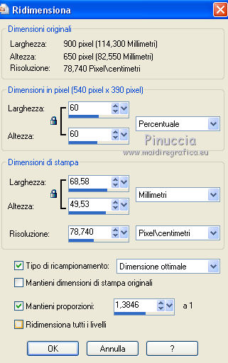 6. Immagine>Ridimensiona, al 60%, tutti i livelli non selezionato.