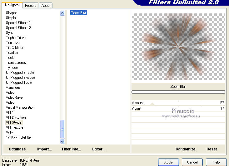 Effetti>Plugins>Filters Unlimited 2.0 - VM Stylize - Zoom Blur.