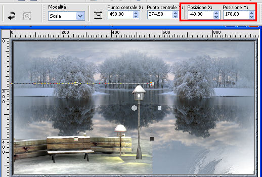 Imposta Posizione X: 458,00 e Posizione Y: 175,00.