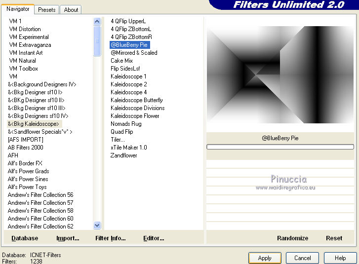 5. Effetti>Plugins>Filters Unlimited 2.0 - &<Bkg Kaleidoscope> - BlueBerryPie.