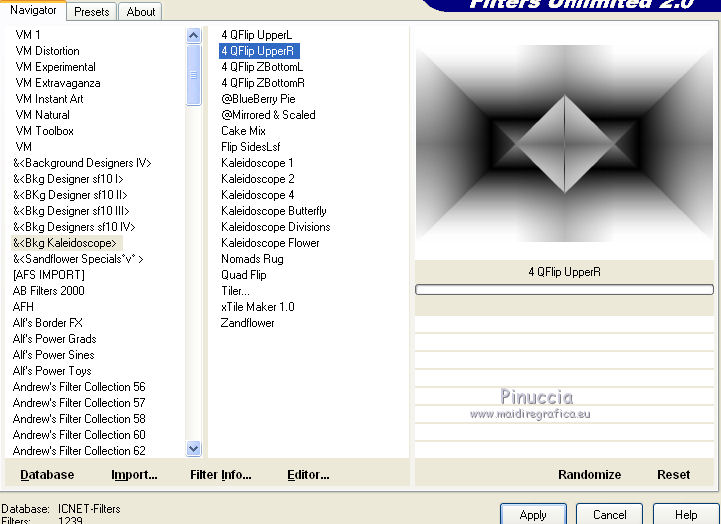 6. Effetti>Plugins>Filters Unlimited 2.0 - &<Bkg Kaleidoscope> - 4Qflip UpperR.