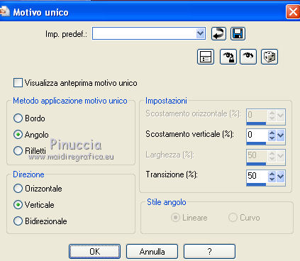 11. Effetti>Effetti di immagine>Motivo unico, con i settaggi precedenti.