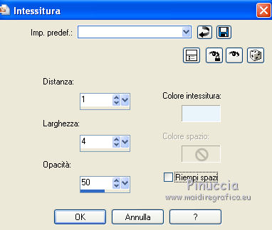 5. Effetti>Effetti di trama>Intessitura - colore intessitura: primo piano.