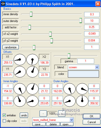 Metti il preset "teom_melted_frame" nella cartella del filtro Sinedots.
