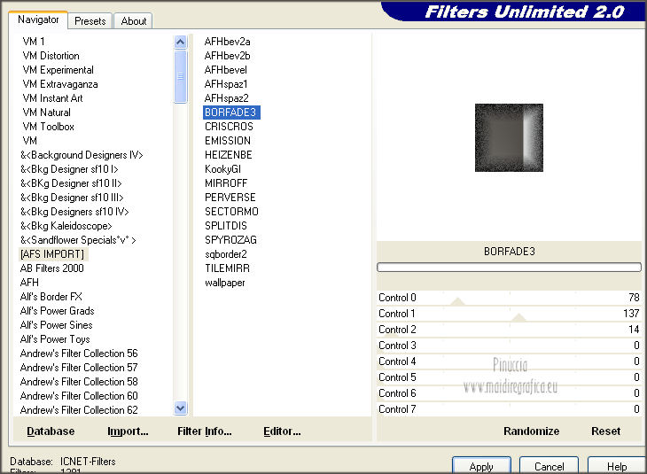 17. Effetti>Plugins>Filters Unlimited 2.0 - AFS Import - Borfade 3, con i settaggi standard.