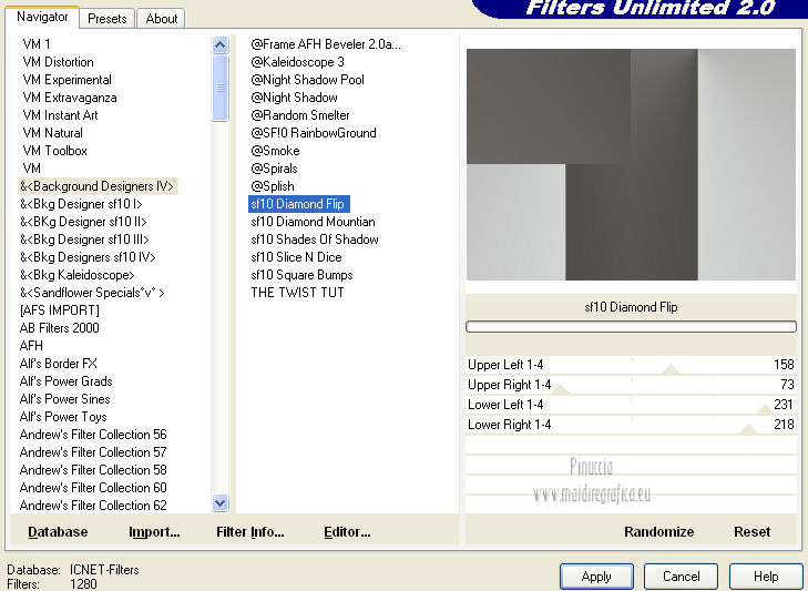 5. Effetti>Plugins>Filters Unlimited 2.0 - &<BKG Designer IV> - Sf10 Diamond Flip.