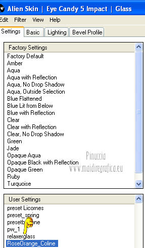Metti il preset RoseOrange_Coline nella cartella del filtro Alien Skin Eye Candy 5 Impact>Settings>Glass.
