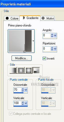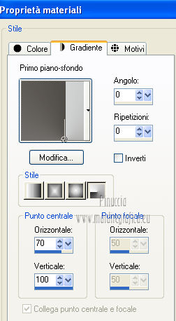 Passa il colore di primo piano a Gradiente, stile Radiale, con i seguenti settaggi.