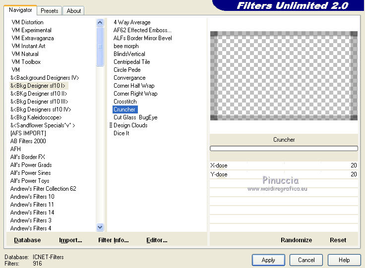 Effetti>Plugins>Filters Unlimited 2.0 - BKG Designersf10I - Cruncher.