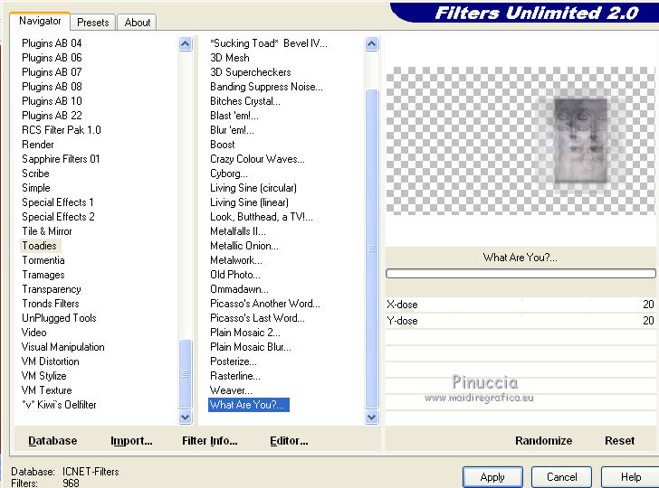 24. Effetti>Plugins>Filters Unlmited - Toadies - What are you - 1 sola volta, con i settaggi precedenti.