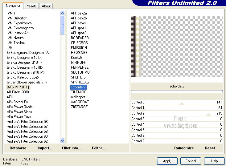 8. Effetti>Plugins>Filters Unlimited 2.0 - AFS Import - sqborder2, con i settaggi standard.
