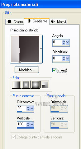 Passa il colore di primo piano a Gradiente, stile Radiale, con i seguenti settaggi.