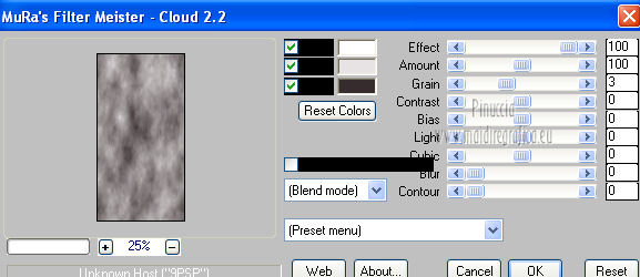 Premere successivamente il tasto Reset serve per cambiare casualmente (ragione per la quale il tuo risultato non potrà essere uguale al mio esempio, l'aspetto delle nuvole.
