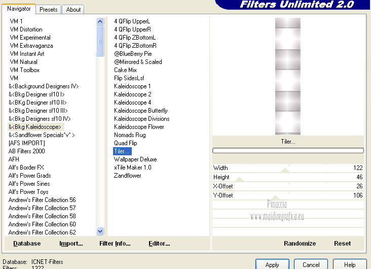 16. Effetti>Plugins>Filters Unlimited 2.0 - &<Kaleidoscope> - Tiler, con i settaggi standard.