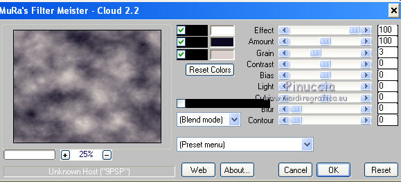 Premere successivamente il tasto Reset serve per cambiare casualmente (ragione per la quale il tuo risultato non potrà essere uguale al mio esempio, l'aspetto delle nuvole.