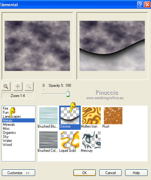ricorda che questo filtro lavora con i lavori impostati nella paletta dei materiali, ma tiene in memoria il primo settaggio dall'apertura del programma.