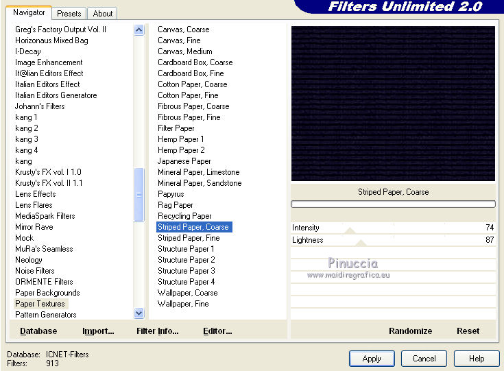 12. Effetti>Plugins>Filters Unlimited - Paper Textures - Striped Paper Coarse.
