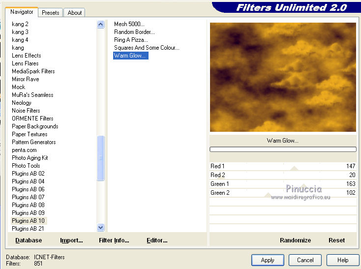 Effetti>Plugins>Filters Unlimited 2.0 - Plugins AB 010 - Warm Glow.