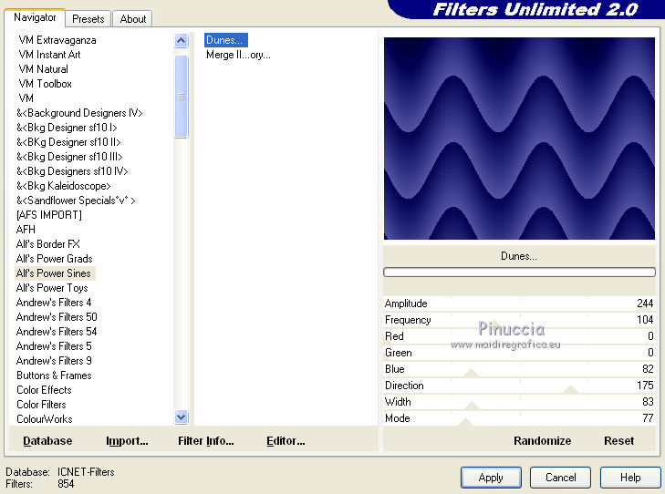 Effetti>Plugins>Filters Unlimited 2.0 - Alf's Power Sines - Dunes, con i settaggi standard.