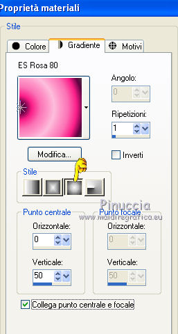1. Passa il colore di primo piano a Gradiente, e seleziona il gradiente ES Rosa 80 con i seguenti settaggi.