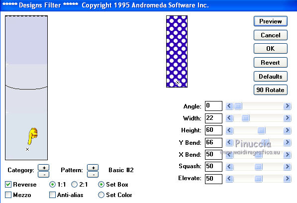 Effetti>Plugins>Andromeda - Designs, con i settaggi precedenti.