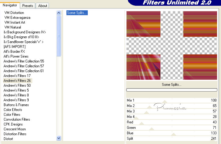 Effetti>Plugins>Filters Unlimited 2.0 - Andrew's Filter collection 26 - Some Splits.