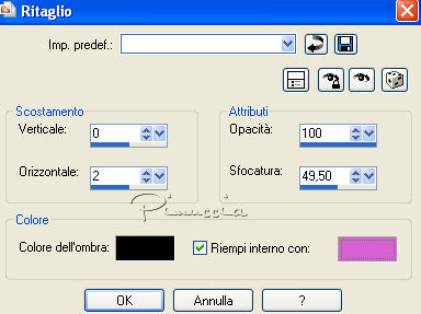 Effetti>Effetti 3D>Sfalsa ombra, con i settaggi precedenti.