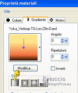 1. Passa il colore di primo piano a Gradiente e seleziona il gradiente Yoka-verloop-TG-Les-Zfin-Dwal con i seguenti settaggi.