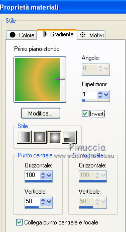 Passa il colore di primo piano a Gradiente, stile Sprazzo di luce, con i seguenti settaggi.