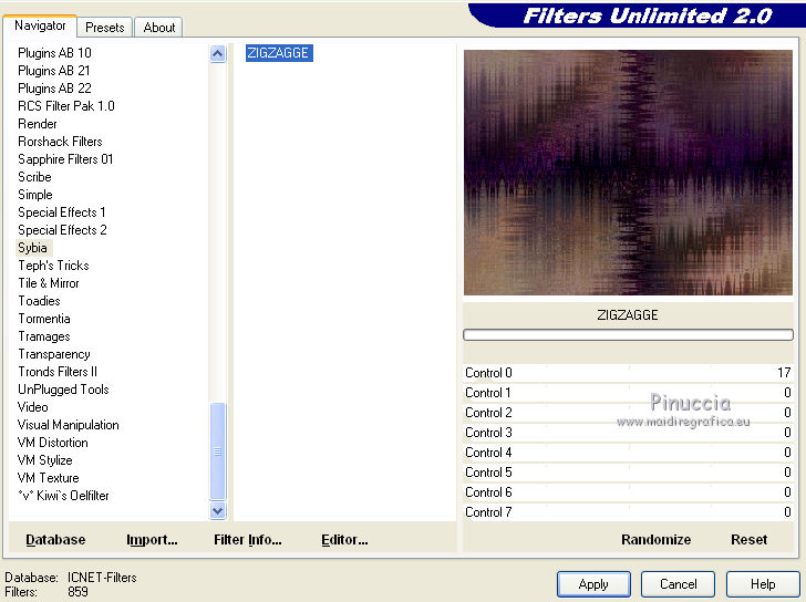 Effetti>Plugins>Filters Unlimited 2.0 - Sybia - Zigzagge, con i settaggi standard.