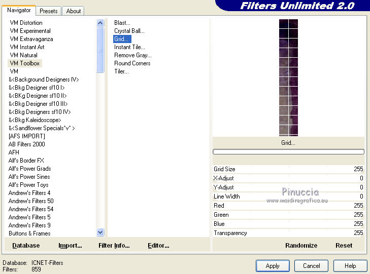 Effetti>Plugins>Filters Unlimited 2.0 - VM Toolbox - Grid.