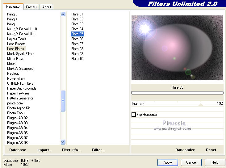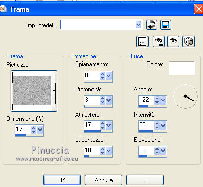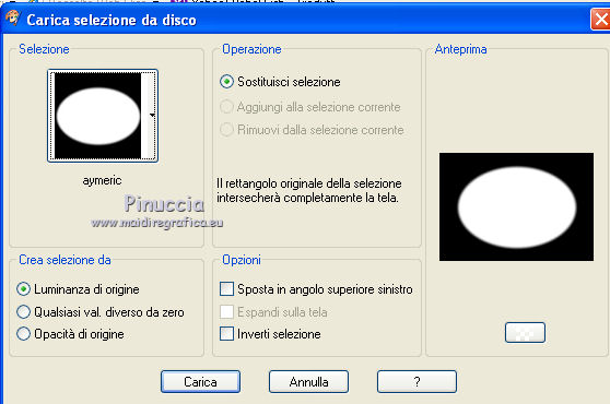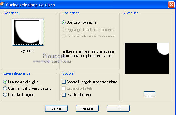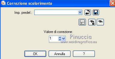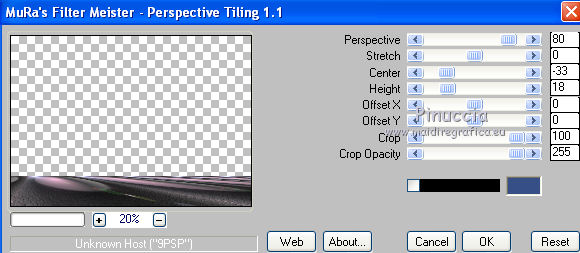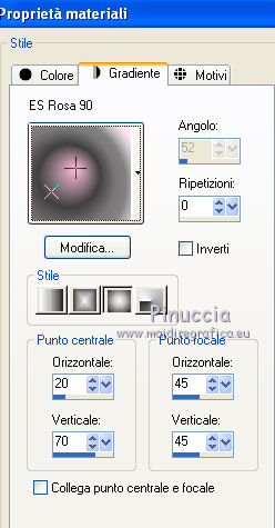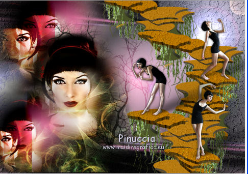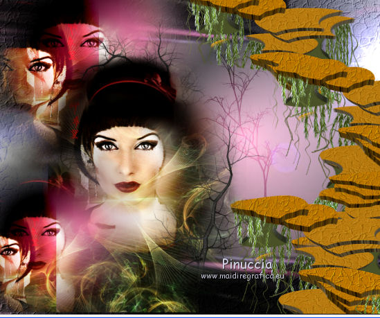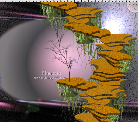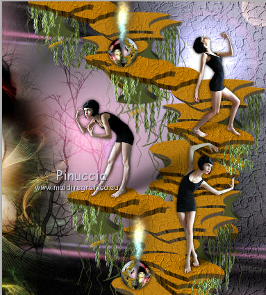 Occorrente: Materiale qui Il materiale fa parte della collezione personale di Roserika. Per favore, lascia intatto il copyright. Filtri: Se hai problemi con i filtri, ricordati della mia sezione filtri qui Filters Unlimited 2.0 qui Mura's Meister - Perspective Tiling qui Metti il gradiente nella cartella Gradienti. Metti le selezioni nella cartella Selezioni. La trama Corel_15_045 è standard nelle versioni più recenti di PSP, e corrisponde alla trama standard Pietruzze delle versioni precedenti. Se non la trovi nel tuo PSP, metti quella fornita nella cartella Trame. 1. Apri una nuova immagine trasparente 1200 x 850 pixels. Passa il colore di primo piano a Gradiente e seleziona il gradiente ES Rosa 90, con i seguenti settaggi. ![]() Riempi l'immagine trasparente con il gradiente.Livelli>Duplica. Effetti>Effetti di trama>Trama - seleziona la trama Pietruzze, o Corel 14_045 con i seguenti settaggi. ![]() Cambia la modalità di miscelatura di questo livello in Moltiplica. 2. Selezione>Carica/Salva selezione>Carica selezione da disco. Cerca e carica la selezione "aymeric". ![]() Premi sulla tastiera il tasto CANC. Selezione>Deseleziona. Immagine>Rifletti. Livelli>Unisci>Unisci visibile. Effetti>Plugins>Filters Unlimited 2.0 - Lens Flare - Flare 05, con i settaggi standard. ![]() Immagine>Rifletti. Selezione>Carica/Salva selezione>Carica selezione da disco. Cerca e carica la selezione "aymeric2". ![]() Selezione>Innalza selezione a livello. Selezione>Deseleziona. Immagine>Rifletti. Immagine>Capovolgi. Effetti>Effetti di immagine>Scostamento. ![]() 3. Attiva il livello sottostante. Livelli>Duplica. Immagine>Rifletti. Effetti>Plugins>Mura's Meister - Perspective Tiling. ![]() Regola>Sfocatura>Sfocatura gaussiana - raggio 3. ![]() Cambia la modalità di miscelatura di questo livello in Luce netta. Livelli>Duplica. Immagine>Rifletti. Immagine>Capovolgi. Selezione>Carica/Salva selezione>Carica selezione da disco. Carica nuovamente la selezione "aymeric2". Premi sulla tastiera il tasto CANC. Selezione>Deseleziona. Effetti>Effetti di immagine>Scostamento. ![]() 4. Apri il tube "plateauescaliers" e vai a Modifica>Copia. Torna al tuo lavoro e vai a Modifica>Incolla come nuovo livello. Spostalo a destra, come nel mio esempio.Apri il tube "arbre mort". Attiva il livello Raster 1 e vai a Modifica>Copia. Torna al tuo lavoro e vai a Modifica>Incolla come nuovo livello. Spostalo a destra, come nell'esempio.![]() Cambia la modalità di miscelatura di questo livello in Sovrapponi. Livelli>Disponi>Sposta giù. 5. Attiva il livello superiore. Apri il tube "femmeportraits" e vai a Modifica>Copia. Torna al tuo lavoro e vai a Modifica>Incolla come nuovo livello. Spostalo a sinistra, come nel mio esempio.Copia il livello Raster 2 del tube arbresmort e vai a Modifica>Copia. Torna al tuo lavoro e vai a Modifica>Incolla come nuovo livello. Spostalo come nell'esempio.![]() Cambia la modalità di miscelatura di questo livello in Sovrapponi. 6. Copia e incolla sul tuo lavoro i tre livelli del tube "3femmes", e disponi le donne come nell'esempio.![]() Livelli>Unisci>Unisci visibile. Apri il tube "formetorsade" e vai a Modifica>Copia. Torna al tuo lavoro e vai a Modifica>Incolla come nuovo livello. Spostalo in basso a sinistra.![]() Livelli>Unisci>Unisci visibile. Livelli>Duplica. Effetti>Effetti geometrici>Cerchio. ![]() Immagine>Ridimensiona, al 10%, tutti i livelli non selezionato. Posiziona la sfera in alto a destra.Regola>Colore>Correzione scolorimento. ![]() Effetti>Effetti 3D>Sfalsa ombra, con il colore nero. ![]() Livelli>Duplica. Immagine>Rifletti. Spostalo in basso a destra.Apri il tube "formeflamme" e vai a Modifica>Copia. Torna al tuo lavoro e vai a Modifica>Incolla come nuovo livello. Livelli>Duplica. Posiziona le fiamme sopra le due sfere.![]() 7. Immagine>Aggiungi bordatura, 20 pixels, simmetriche, con il colore nero. Firma il tuo lavoro ed esporta come jpg ottimizzata, compressione 20. ![]() ![]() Se hai problemi o dubbi, o trovi un link non funzionante, o anche soltanto per un saluto, scrivimi. |