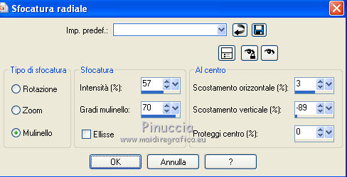 Regola>Sfocatura>Sfocatura radiale, con i settaggi precedenti.