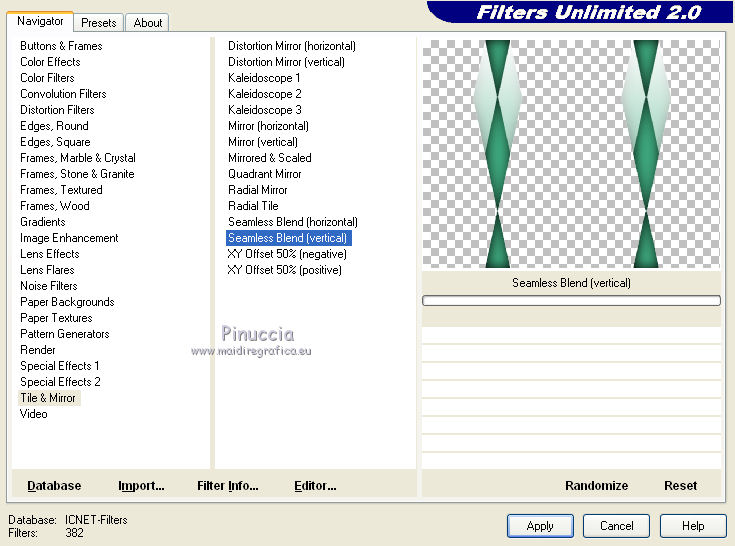 Effetti>Plugins>Filters Unlimited 2.0 - Tile and Mirror - Seamless blend (Vertical).