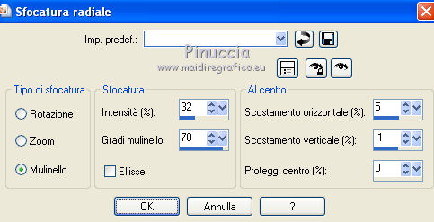 Regola>Sfocatura>Sfocatura radiale, con i settaggi precedenti.