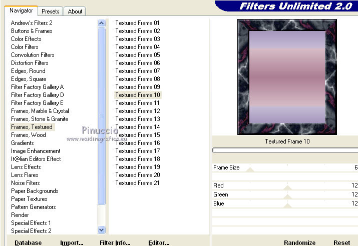 Effetti>Plugins>Filters Unlimited 2.0 - Frames Textured - Frame 10.