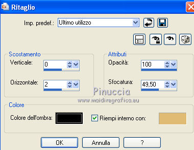 Effetti>Effetti 3D>Sfalsa ombra, con i settaggi precedenti.