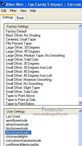 Effetti>Plugins>Alien Skin Eye Candy 5 Impact - Extrude,