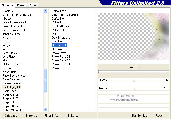 Effetti>Plugins>Filters Unlimited - Photo Aging Kit - Hairs and Dust.
