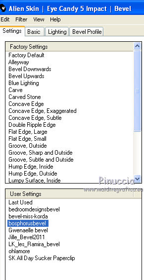 Effetti>Plugins>Alien Skin Eye Candy 5 Impact - Bevel,